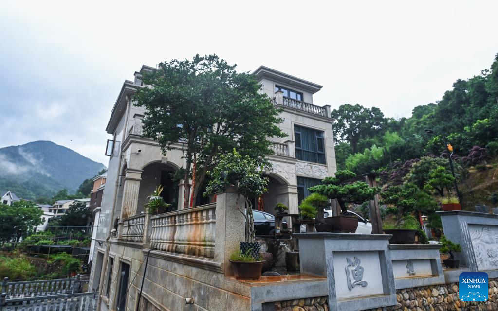 Potted plants are placed in a residence in Dayuan Village of Chisong Town in Jindong District of Jinhua City, east China's Zhejiang Province, June 20, 2023. Based on the integration of tourism and agriculture, Jindong District has fostered a rural industrial development belt among its administrative villages with local distinctive industries. (Xinhua/Xu Yu)