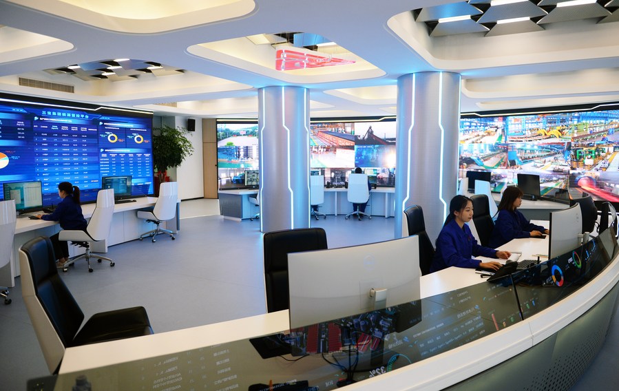 Staff members monitor data at a smart control center of a private enterprise in Zhangzhou, southeast China's Fujian Province, June 19, 2023. (Xinhua/Liu Yongzhen)