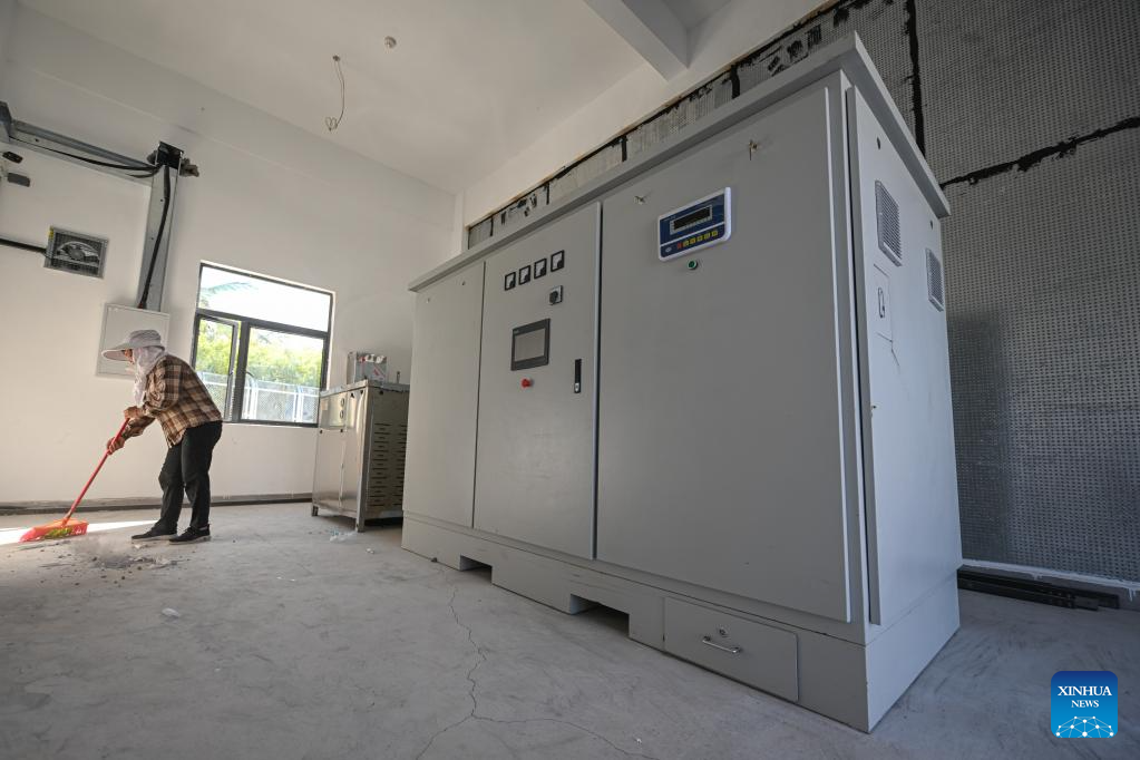 A worker cleans a quarantine treatment room of the independent customs operations project in Qinglan Port of Wenchang, south China's Hainan Province, June 20, 2023. Construction of necessary infrastructures have been completed at the independent customs operations project in Qinglan Port of Wenchang.