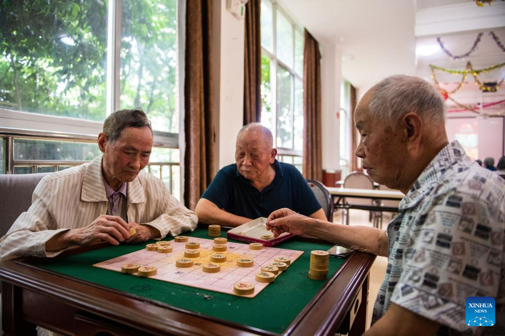 Senior residents play chess at a social welfare center in Hanshou County of Changde City, central China's Hunan Province, June 20, 2023.