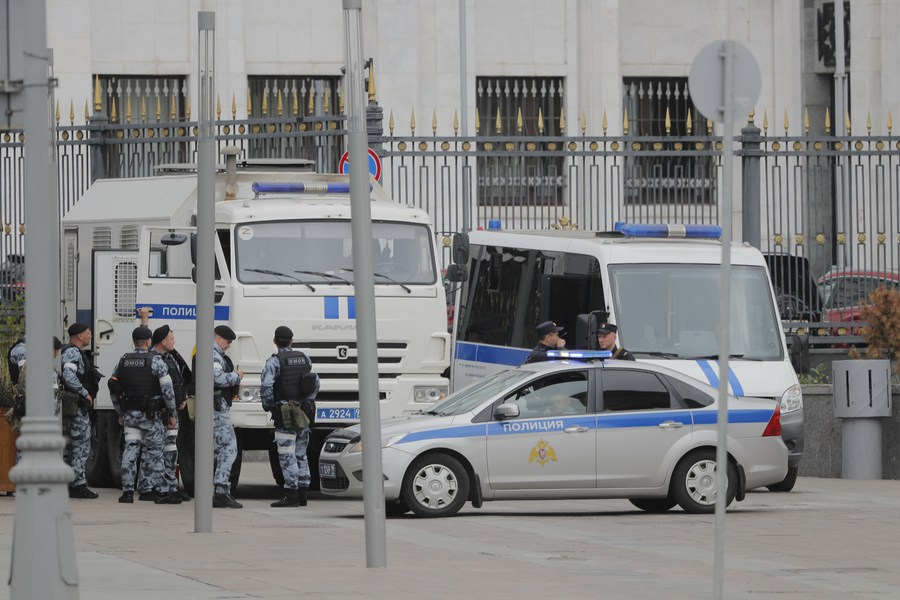 The headquarters of the Wagner group located in Russia's second-largest city of St. Petersburg was cordoned off by security forces. A Xinhua correspondent witnessed several police cars parked in or around the compound, with law enforcers on duty.
