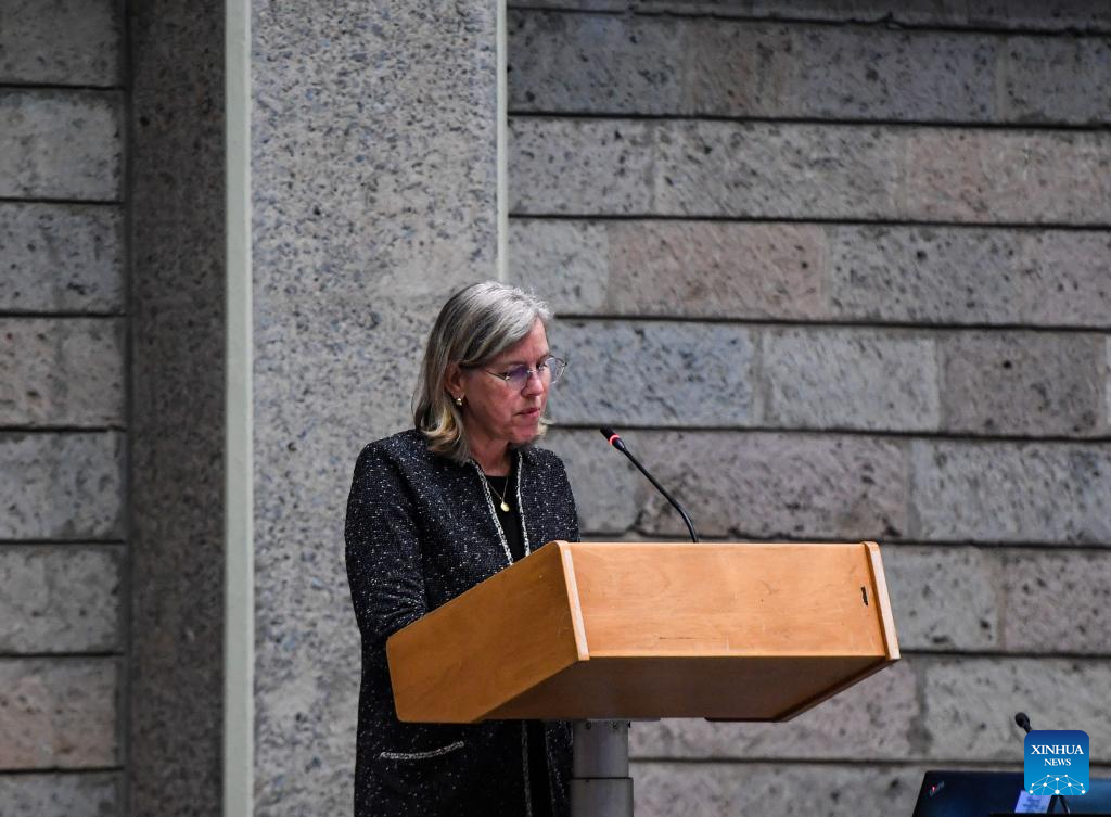 Susan Gardner, the director of Ecosystems Division of the United Nations Environment Programme (UNEP), speaks at the third conference on climate, ecosystems, and livelihoods in Nairobi, Kenya, on June 26, 2023. Chinese and African scientists on Monday renewed the call for upscaling farming systems that are in harmony with nature and resilient to climatic shocks in order to overcome hunger and malnutrition. (Xinhua/Li Yahui)