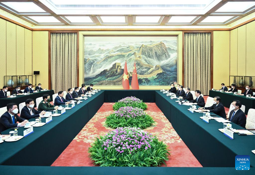 Pham Minh Chinh, also a member of the Political Bureau of the Communist Party of Vietnam Central Committee, said China's massive achievements in building a strong country had become an engine for global economic growth, which Vietnam sincerely admires.