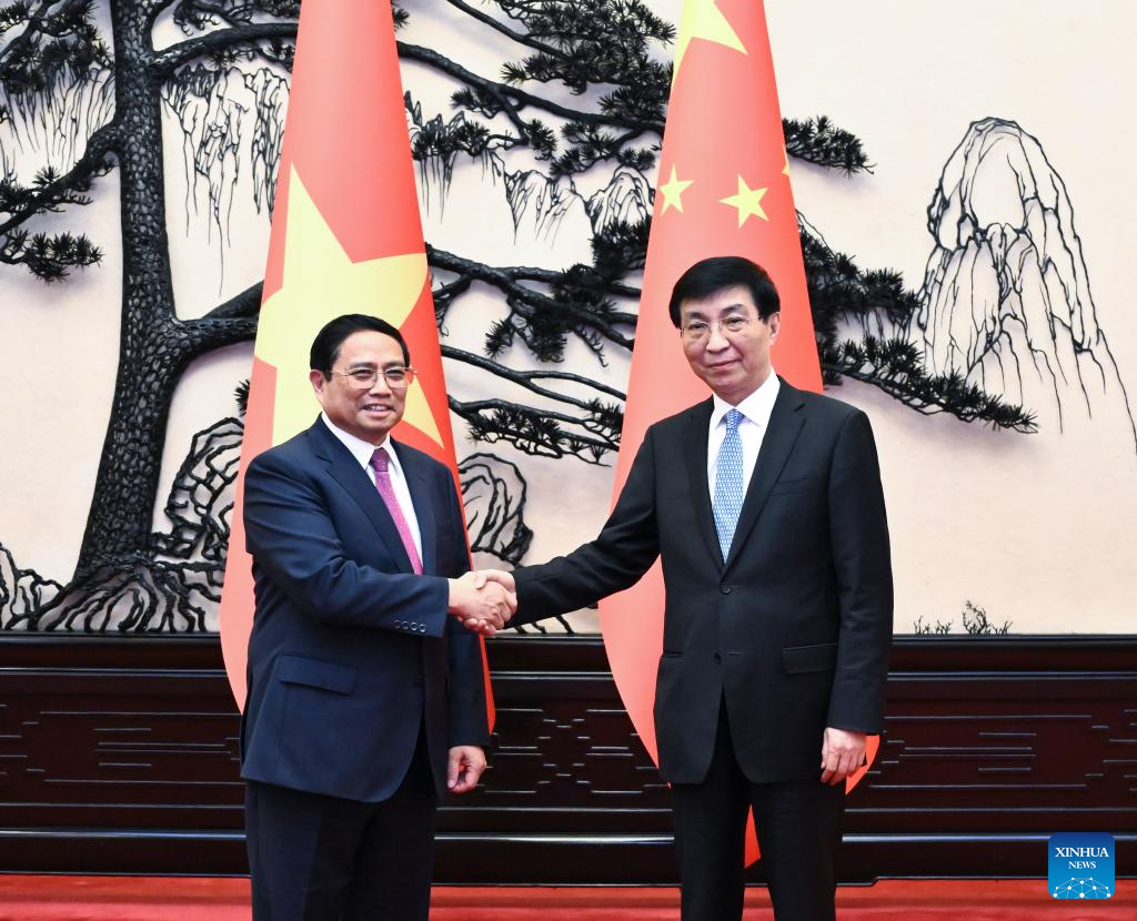 BEIJING, June 27 (Xinhua) -- Wang Huning, chairman of the National Committee of the Chinese People's Political Consultative Conference (CPPCC), met with the Prime Minister of Vietnam, Pham Minh Chinh, in Beijing on Tuesday.