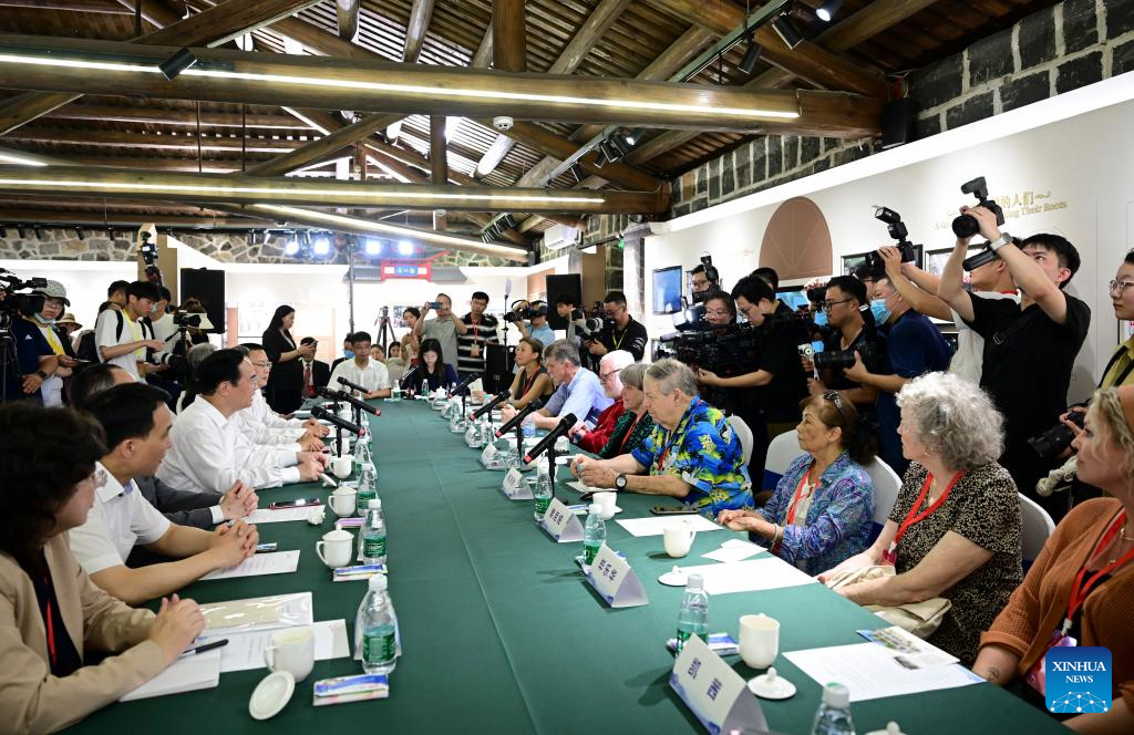 This photo shows a symposium of the Kuliang Friends in Fuzhou, southeast China's Fujian Province, June 28, 2023.