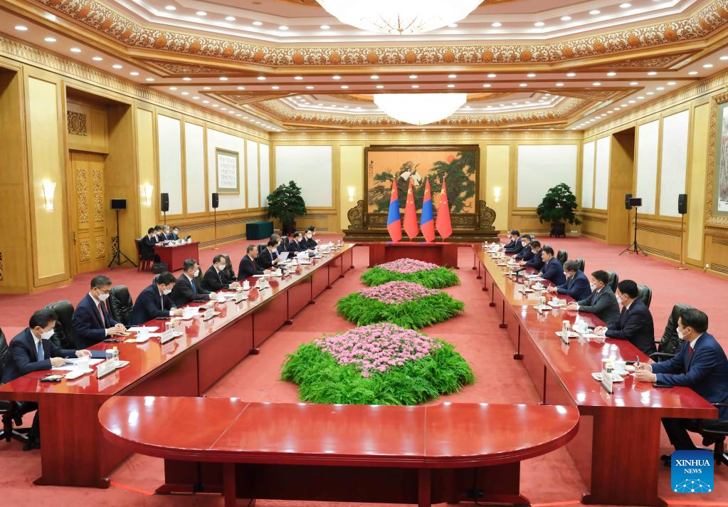 China is willing to work with Mongolia to faithfully implement the consensus reached by the two heads of state, continue to enrich the China-Mongolia comprehensive strategic partnership, deepen political mutual trust and mutually beneficial cooperation, and accelerate the construction of a China-Mongolia community with a shared future to better benefit the two peoples.