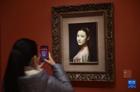 A visitor takes photos of a painting at the National Art Museum of China (NAMOC) in Beijing, Jan. 22, 2023. (Photo/Xinhua)