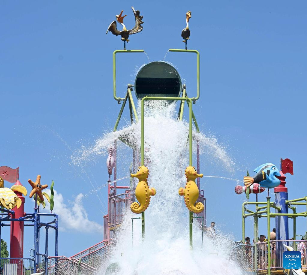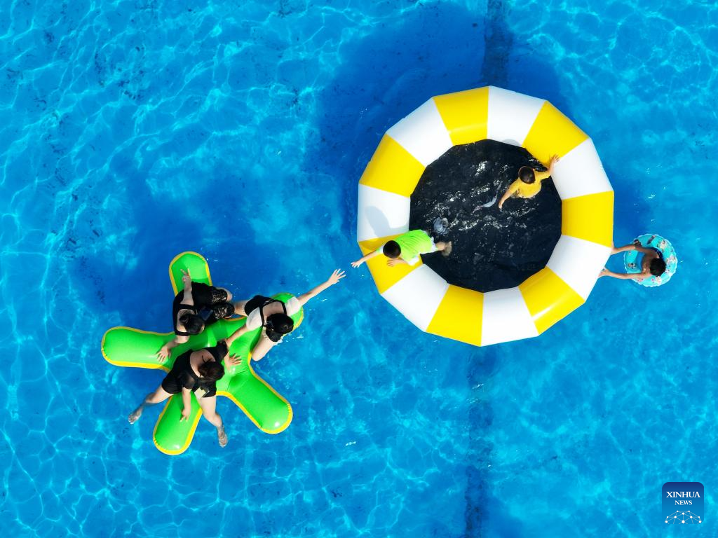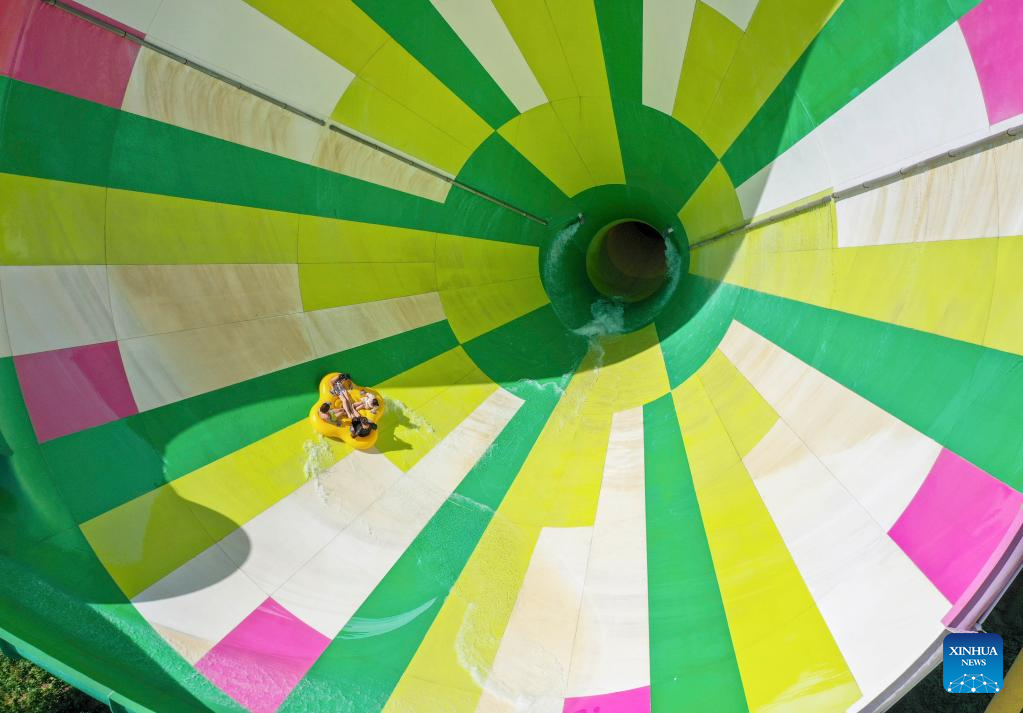 People have fun at a water amusement park in Shijiazhuang, north China's Hebei Province, June 29, 2023. (Photo by Chen Qibao/Xinhua)