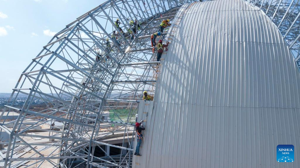 Workers construct the dome of the Judiciary Square project in Dodoma, Tanzania, on June 25, 2023. (Photo by Nurdin Pallangyo/Xinhua)