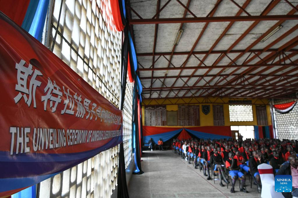 An unveiling ceremony for the Confucius Classroom at Starehe Boys' Center and School is held in Nairobi, Kenya, on June 30, 2023. A Confucius Classroom was launched on Friday at Starehe Boys' Center and School in downtown Nairobi to facilitate the teaching of Chinese language to teenage learners. (Xinhua/Han Xu)