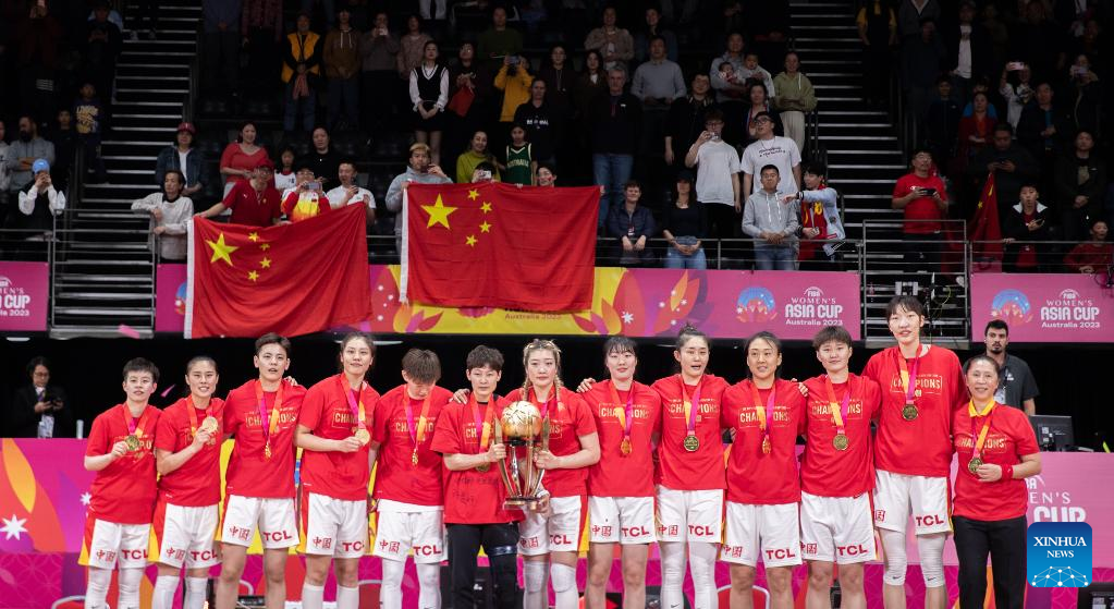 Members of the gold medalist team China pose during the awarding ceremony of the 2023 FIBA Women's Asia Cup in Sydney, Australia, July 2, 2023. (Photo by Hu Jingchen/Xinhua)
