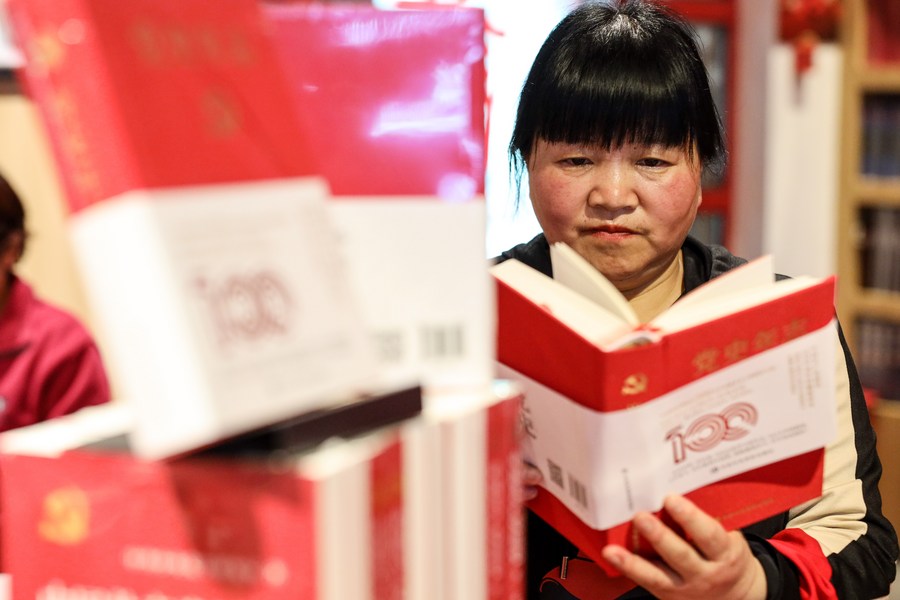 Photo taken on April 23, 2021 shows a local resident reading a book at a "Red" Bookstore in Zunyi, southwest China's Guizhou Province. (Xinhua/Ou Dongqu)