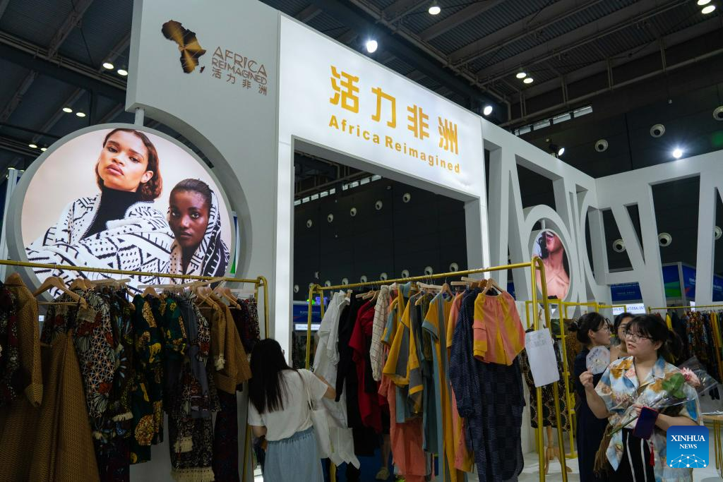 Visitors shop for African clothes during the third China-Africa Economic and Trade Expo in Changsha, central China's Hunan Province, July 1, 2023. The third China-Africa Economic and Trade Expo is held in Changsha from June 29 to July 2. (Xinhua/Zou Yu)