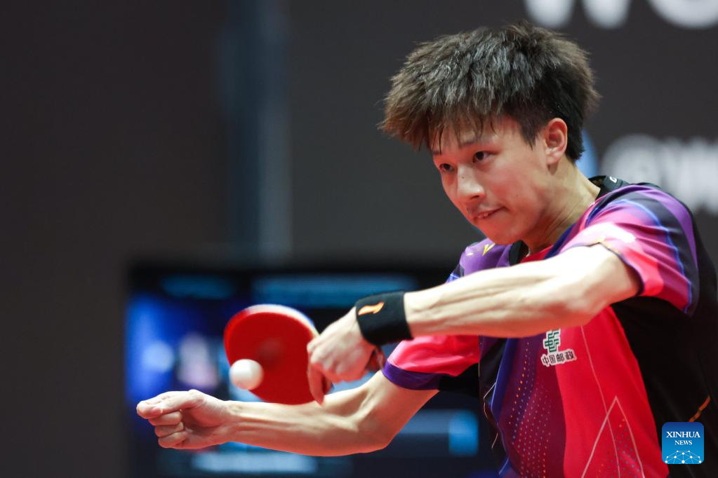 Xiang Peng of China competes during men's singles semifinal match against his teammate Lin Gaoyuan at the 2023 World Table Tennis (WTT) Contender Zagreb in Zagreb, Croatia, on July 1, 2023. (Photo by Luka Stanzl/PIXSELL via Xinhua)