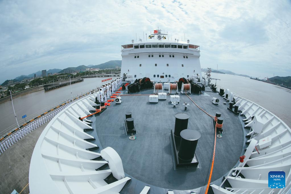 Chinese naval hospital ship "Peace Ark" sets sail at a port in Zhoushan, east China's Zhejiang Province, July 3, 2023. (Photo by Han Lin/Xinhua)