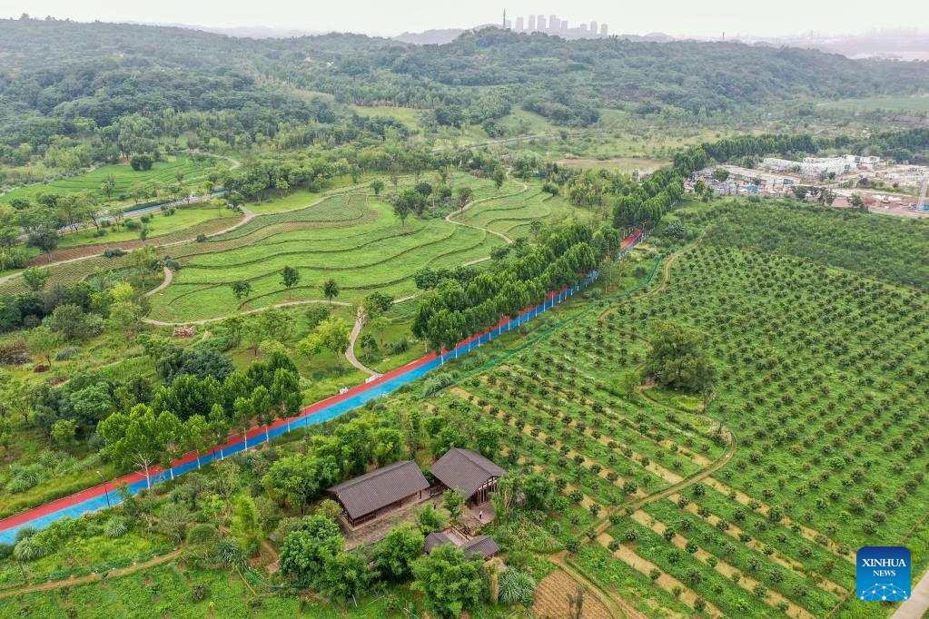 This aerial photo shows a view of Guangyang Isle in southwest China's Chongqing, July 3, 2023. (Xinhua/Tang Yi)