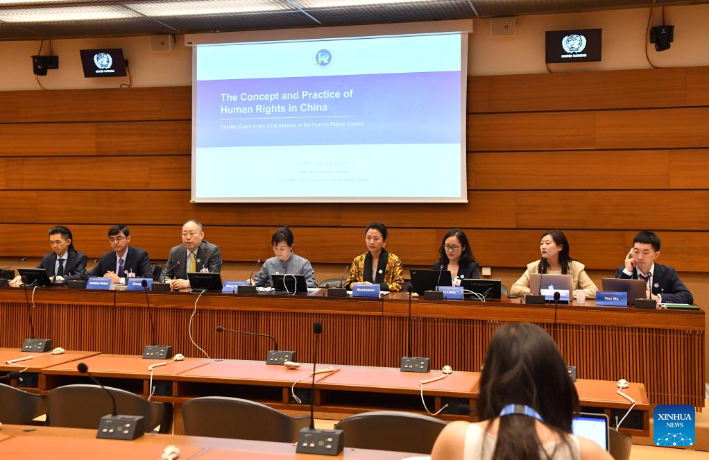 GENEVA, July 4 (Xinhua) -- During the ongoing 53rd session of the United Nations (UN) Human Rights Council, the China Society for Human Rights Studies on Monday held a side event at which experts detailed the concept and practices of human rights in China, at the Palais des Nations here.