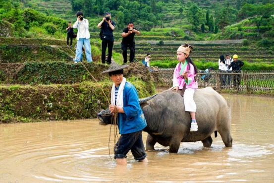 Visitors enjoy themselves during a plough festival held on terraced fields in Ming'ao Village, Yongjia County of Wenzhou, east China's Zhejiang Province. A plough festival was held recently on terraced fields in Ming'ao Village, attracting many visitors across the country. Under the Green Rural Revival Program launched in Zhejiang, local rural tourism has thrived. (Xinhuanet/Hu Jinbiao)
