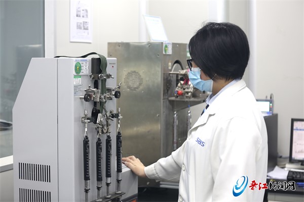 An R&D staff member tests the physical performance of zippers in a lab of Chinese zipper manufacturer SBS in southeast China's Fujian province. (Photo from ijjnews.com)
