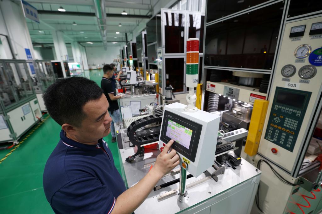 A staff member works at an electronic technology company in Yaohai District of Hefei City, east China's Anhui Province, June 25, 2023. In recent years, Yaohai District has been committed to promoting the high-quality development of small and medium-sized technology-based enterprises, adding impetus to regional economic development. (Photo by Xie Chen/Xinhua)