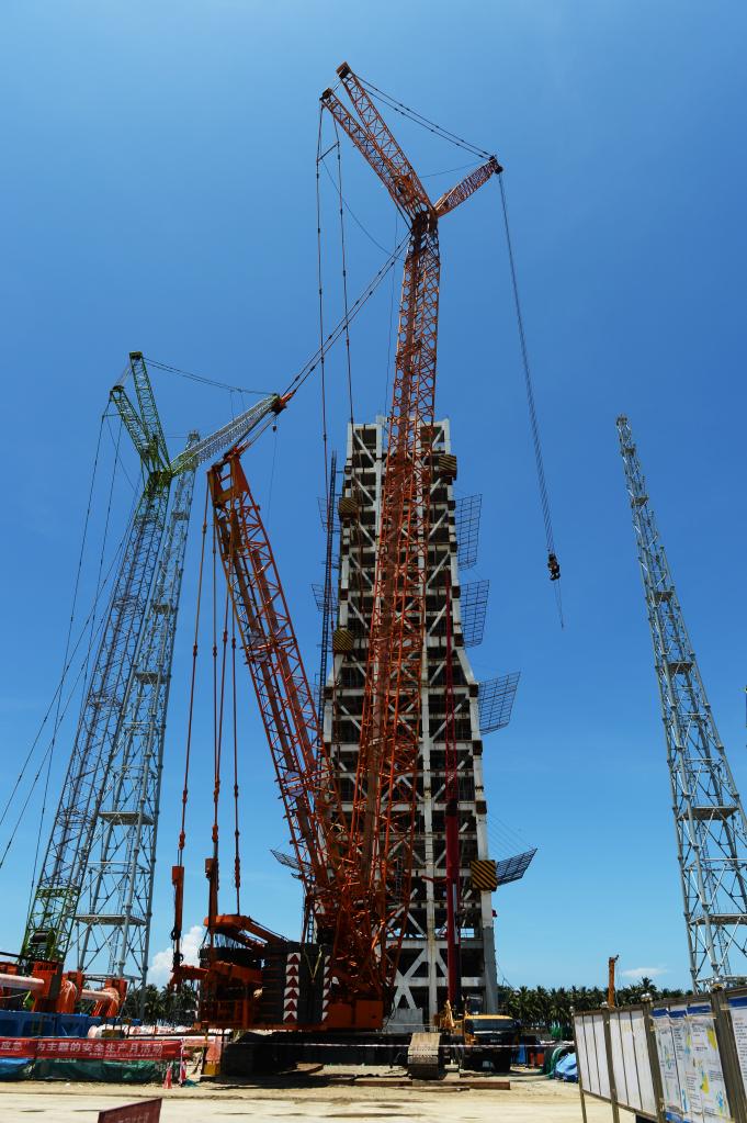 This photo taken on June 26, 2023 shows a construction site of the Hainan commercial spacecraft launch site in Wenchang City, south China's Hainan Province. Focusing on the development of aerospace science and technology, the Wenchang International Aerospace City, one of the key industrial parks of Hainan free trade port, is undergoing construction in an orderly manner. (Xinhua/Liu Yongzhen)