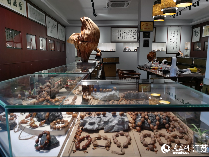 Fruit pit handiworks on display. (People's Daily Online/Wang Jiliang)