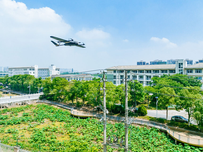 Photo shows a drone carrying out an intelligent power inspection in Wuhan, central China’s Hubei Province. (Photo/Wang Chen)