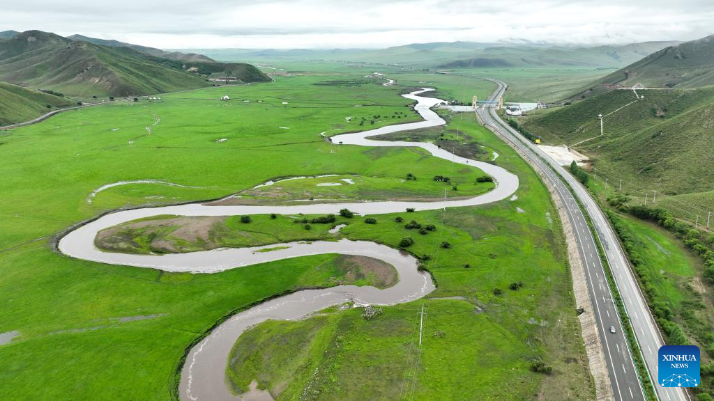 This aerial photo taken on July 5, 2023 shows the summer scenery of the Ulan Mod grassland in Horqin Right Wing Front Banner of Hinggan League, north China's Inner Mongolia Autonomous Region. (Xinhua/Li Zhipeng)
