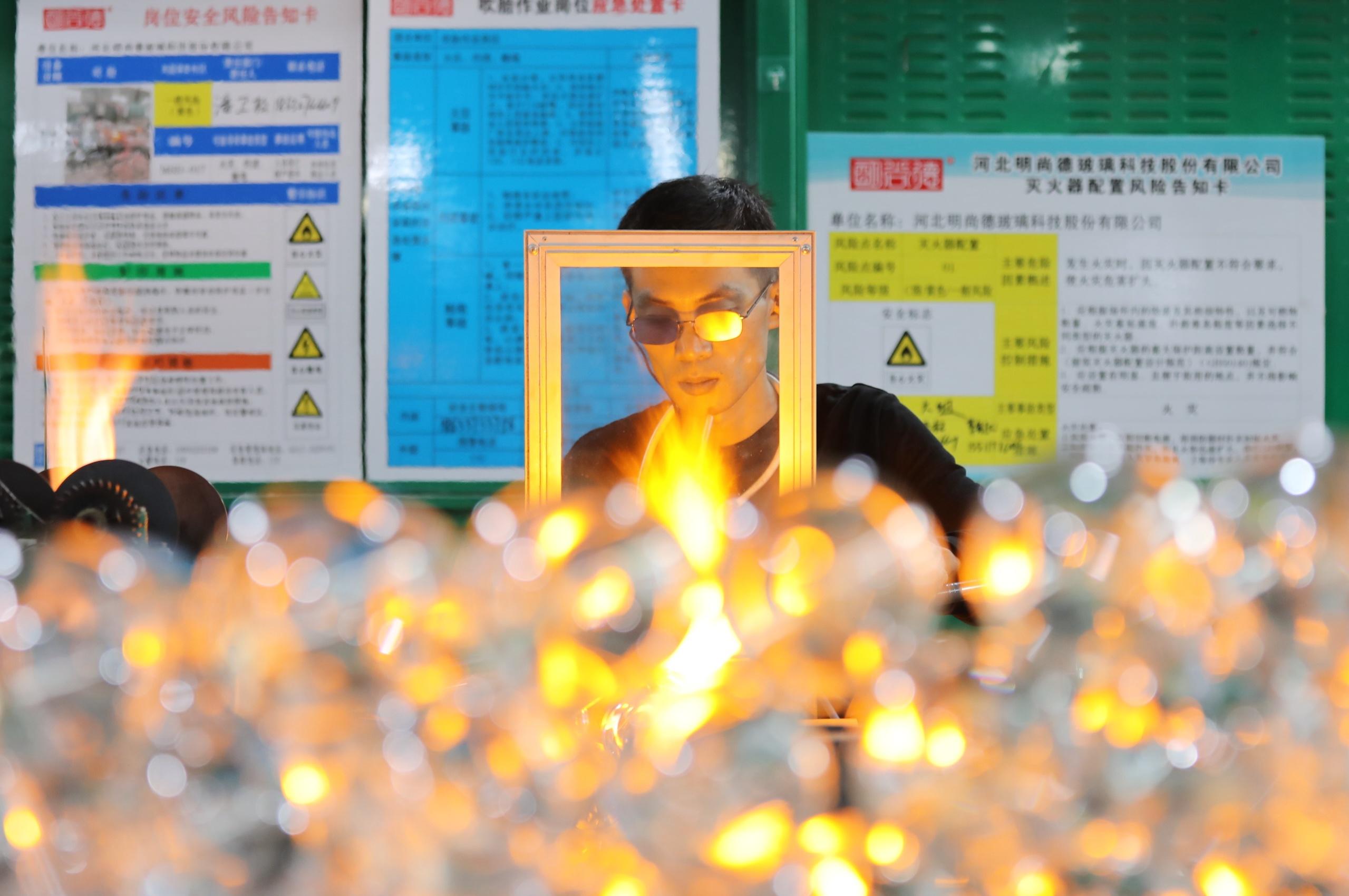 A worker crafts products at a glass workshop in Hejian, Cangzhou, north China's Hebei Province. (Photo courtesy of Hebei Mingshangde Glass Technology Co., Ltd.)