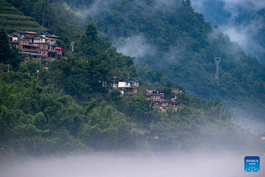 This photo taken on July 4, 2023 shows the scenery of the Nujiang River in Nujiang Lisu Autonomous Prefecture, southwest China's Yunnan Province. (Xinhua/Yang Zhisen)