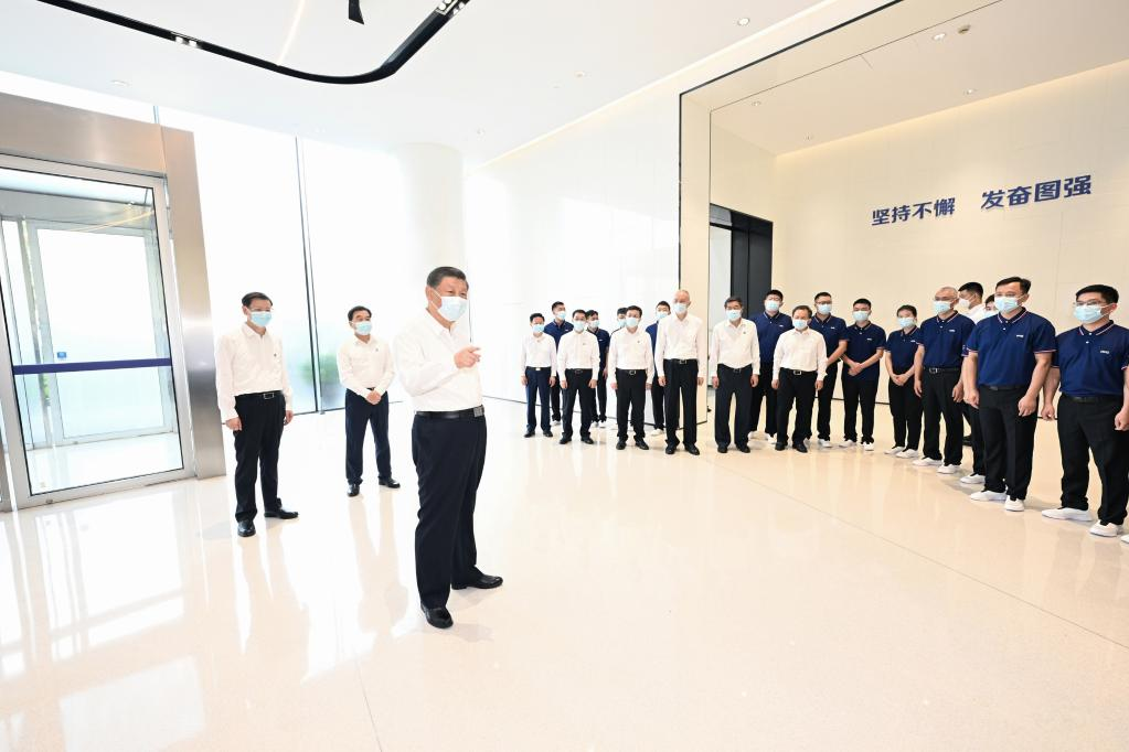 Chinese President Xi Jinping, also general secretary of the Communist Party of China (CPC) Central Committee and chairman of the Central Military Commission, visits a high-tech enterprise in Suzhou, east China's Jiangsu Province, July 5, 2023. Xi inspected the city of Suzhou from Wednesday afternoon to Thursday morning. (Xinhua/Ju Peng)