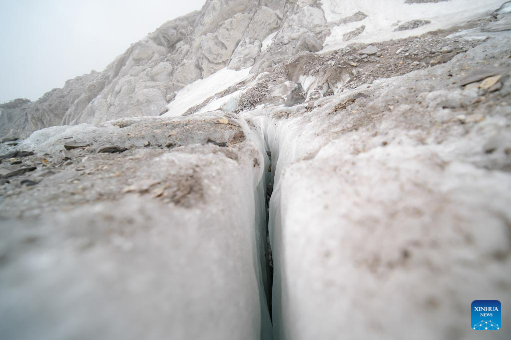 This photo taken on June 19, 2023 shows a view of the Baishui River No. 1 Glacier on the Yulong Snow Mountain in Lijiang City, southwest China's Yunnan Province. (Xinhua/Tian Weiwei)