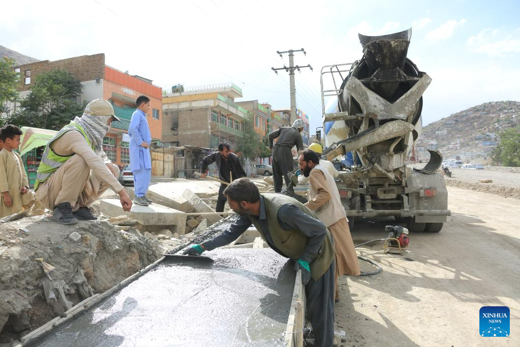 People work at the construction site of a road in Kabul, capital of Afghanistan, July 9, 2023. Afghan Acting Minister for Foreign Affairs Mawlawi Amir Khan Muttaqi has downplayed the reports on the economic crisis, saying the economy of Afghanistan has been moving on the right track, reported the state-run Bakhtar News Agency on Sunday. (Photo by Saifurahman Safi/Xinhua)