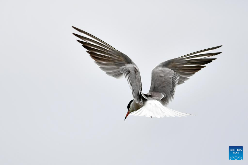 A tern is pictured in the Gahai Lake wetland in Luqu County of the Tibetan Autonomous Prefecture of Gannan, northwest China's Gansu Province, July 7, 2023. (Xinhua/Chen Bin)
