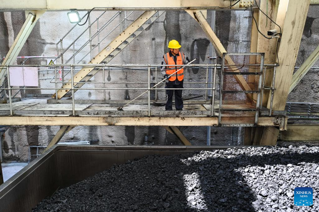 A staff member works at the Longwanggou Coal Mine of China Datang Corporation Ltd. in Jungar Banner, north China's Inner Mongolia Autonomous Region, July 8, 2023. (Xinhua/Liu Lei)