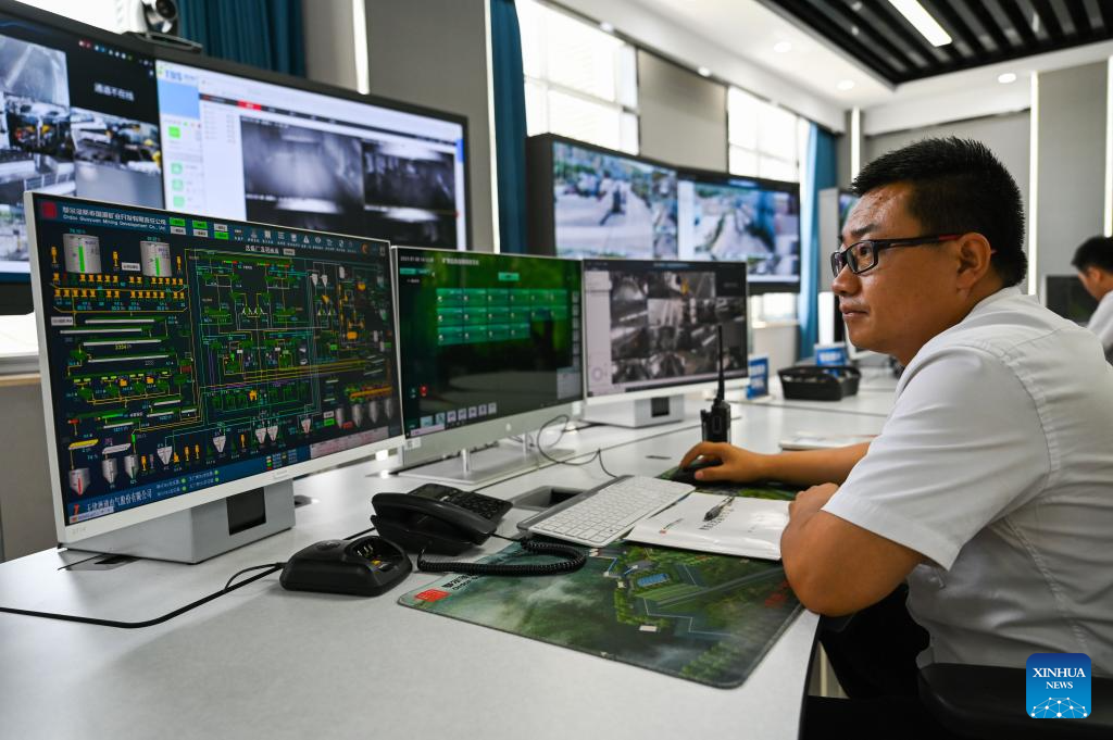 This photo taken on July 8, 2023 shows a power intelligent frequency converter equipment at the Longwanggou Coal Mine of China Datang Corporation Ltd. in Jungar Banner, north China's Inner Mongolia Autonomous Region. (Xinhua/Liu Lei)