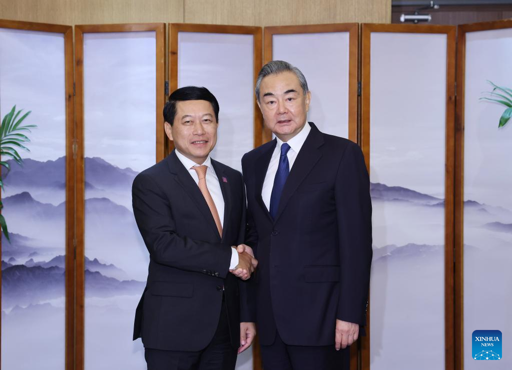 BEIJING, July 10 (Xinhua) -- Wang Yi, director of the Office of the Foreign Affairs Commission of the Communist Party of China (CPC) Central Committee, met with Lao Deputy Prime Minister and Minister of Foreign Affairs Saleumxay Kommasith in Beijing on Monday.