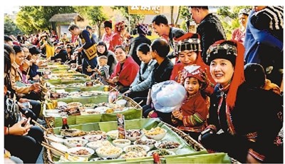 File photo shows a long street banquet in Lyuchun county, Honghe Hani and Yi Autonomous Prefecture, southwest China's Yunnan Province. (Photo/Liang Rongsheng)