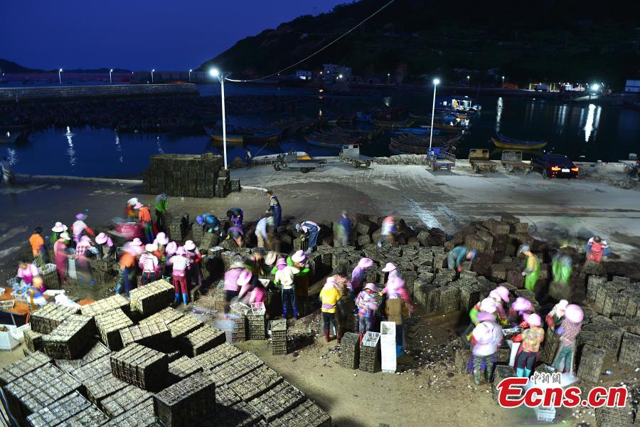 Locals harvest abalones at an abalone breeding base in Lianjiang County, east China's Fujian Province, July 11, 2023. (Photo: China News Service/Zhang Bin)