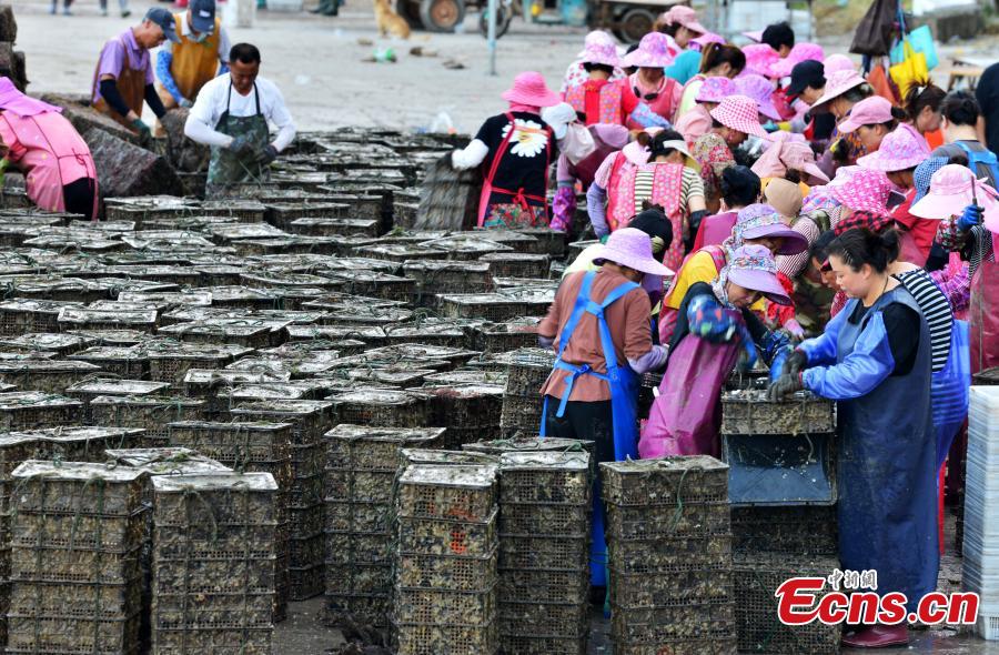 Locals harvest abalones at an abalone breeding base in Lianjiang County, east China's Fujian Province, July 11, 2023. (Photo: China News Service/Zhang Bin)