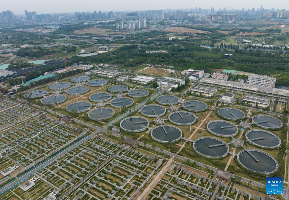 This aerial photo taken on June 14, 2023 shows the ninth water recycling factory of Chengdu in Chengdu, capital of southwest China's Sichuan Province. (Xinhua/Jiang Hongjing)