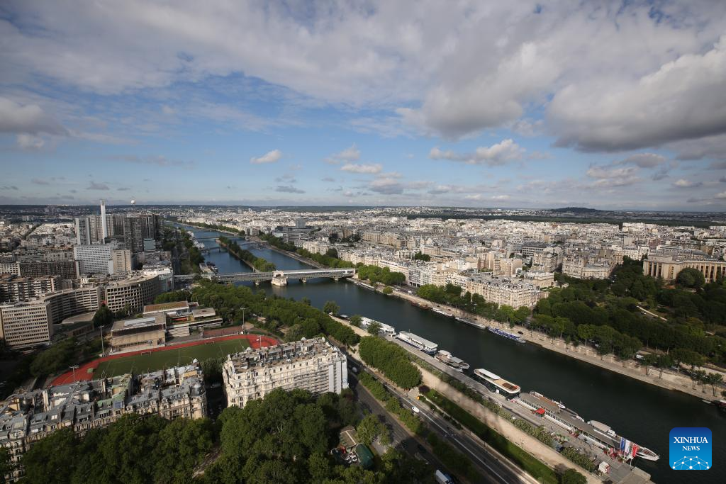 This photo taken on June 18, 2020 shows a view of the Seine River and a cityscape of Paris, France. (Xinhua/Gao Jing)