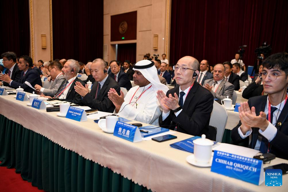Guests attend the fourth China-Arab States Political Parties Dialogue in Yinchuan, capital city of northwest China's Ningxia Hui Autonomous Region, July 13, 2023. Co-hosted by the International Department of the Communist Party of China (CPC) Central Committee, the Party School of the CPC Central Committee (National Academy of Governance), and the Party committee of the Ningxia Hui Autonomous Region, the event's attendees included political leaders from 19 Arab countries and leaders of 67 political parties and organizations. (Xinhua/Feng Kaihua)