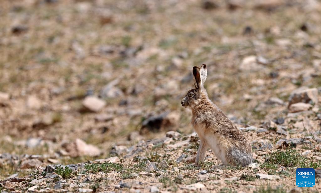 This photo taken on July 10, 2023 shows a woolly hare in the Altun Mountains National Nature Reserve in northwest China's Xinjiang Uygur Autonomous Region. (Xinhua/Wang Peng)