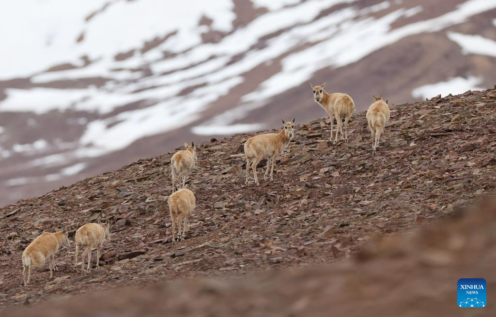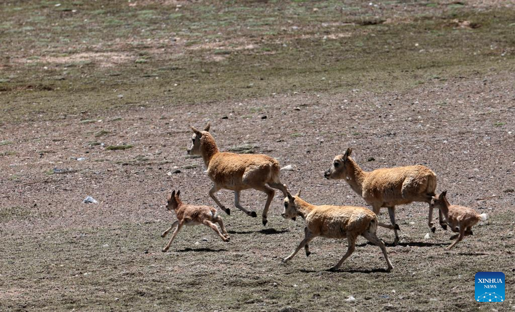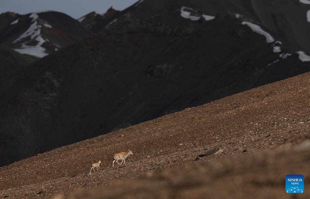 This photo taken on July 1, 2023 shows Tibetan gazelles in the Altun Mountains National Nature Reserve in northwest China's Xinjiang Uygur Autonomous Region. (Xinhua/Cai Yang)