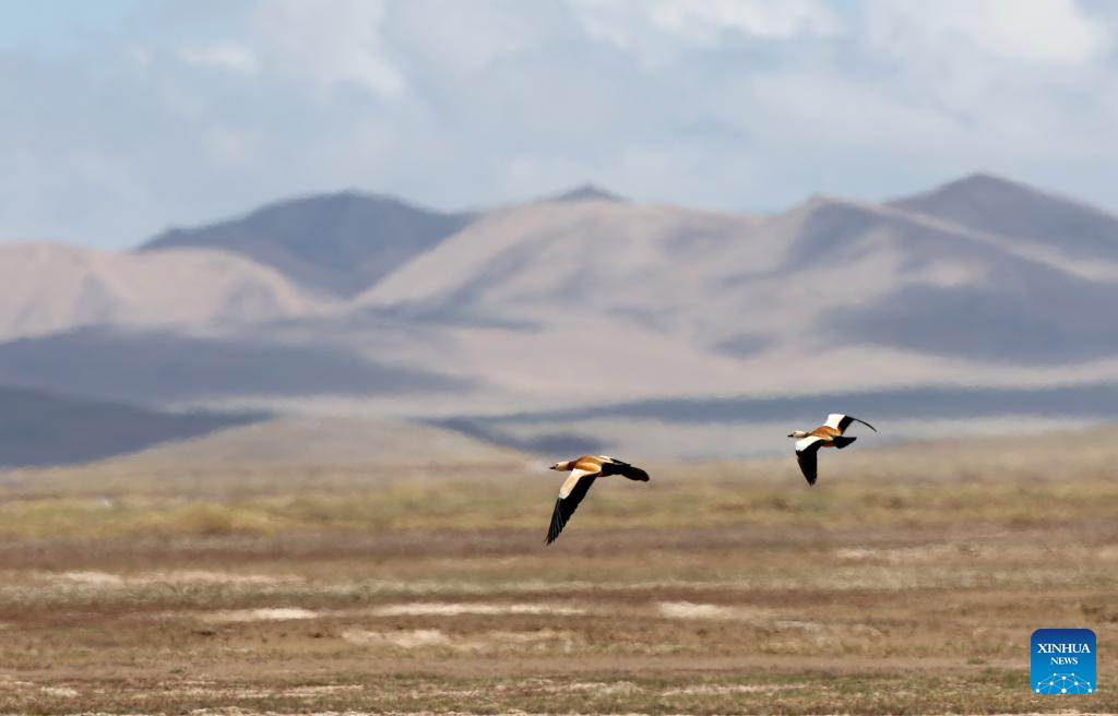 This photo taken on July 6, 2023 shows ruddy shelduck in the Altun Mountains National Nature Reserve in northwest China's Xinjiang Uygur Autonomous Region. (Xinhua/Wang Peng)