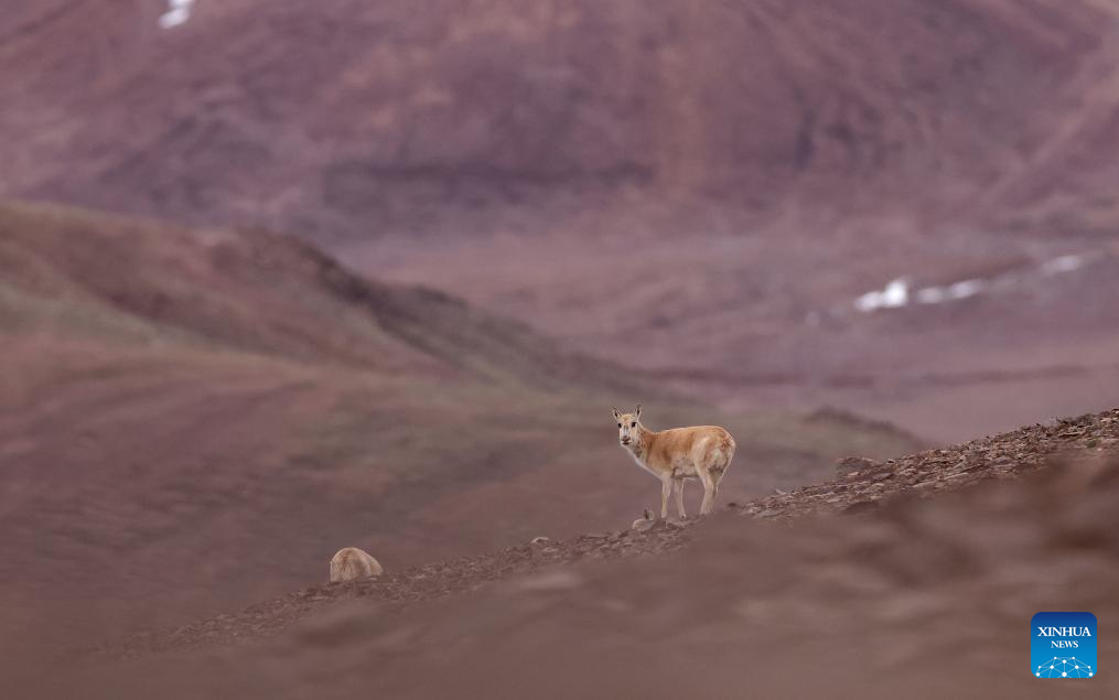 This photo taken on July 1, 2023 shows a Tibetan gazelle in the Altun Mountains National Nature Reserve in northwest China's Xinjiang Uygur Autonomous Region. (Xinhua/Cai Yang)