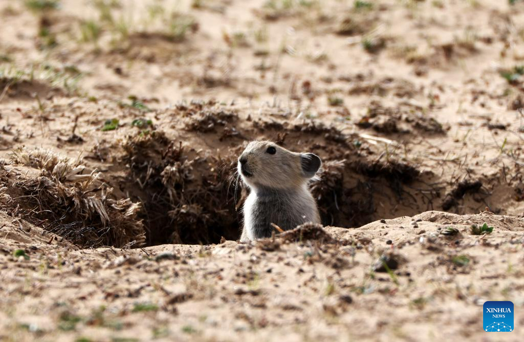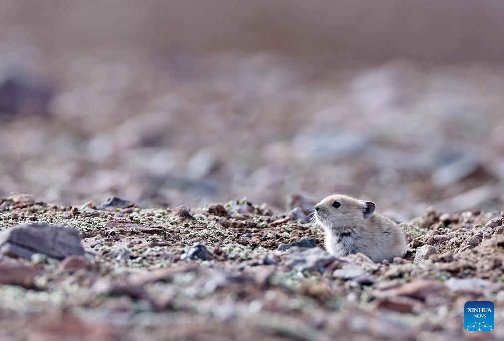 This photo taken on July 5, 2023 shows a plateau pika in the Altun Mountains National Nature Reserve in northwest China's Xinjiang Uygur Autonomous Region. (Xinhua/Wang Peng)
