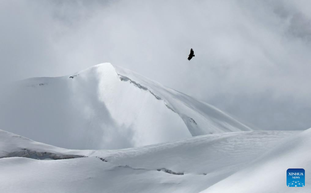 This photo taken on July 8, 2023 shows a vulture flying over the Altun Mountains National Nature Reserve in northwest China's Xinjiang Uygur Autonomous Region. (Xinhua/Wang Peng)