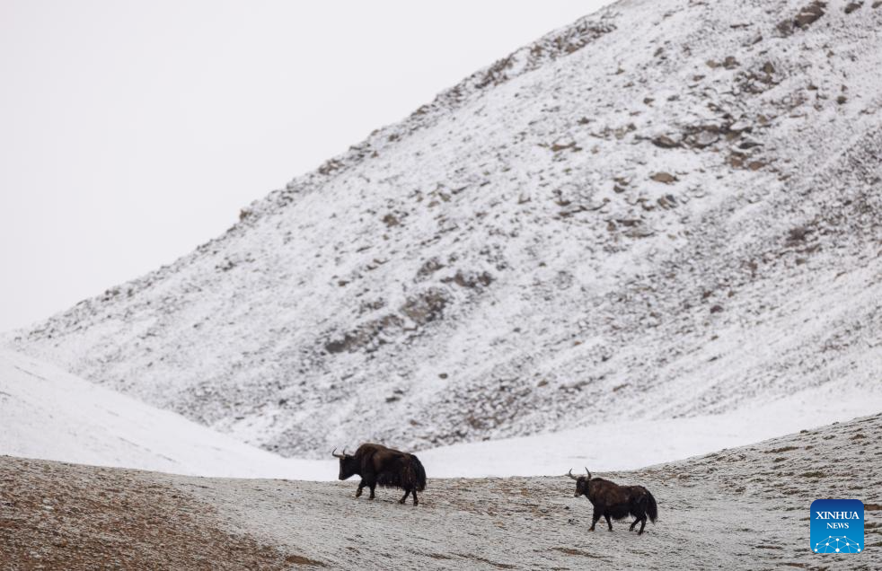 This photo taken on July 2, 2023 shows wild yaks in the Altun Mountains National Nature Reserve in northwest China's Xinjiang Uygur Autonomous Region. (Xinhua/Cai Yang)